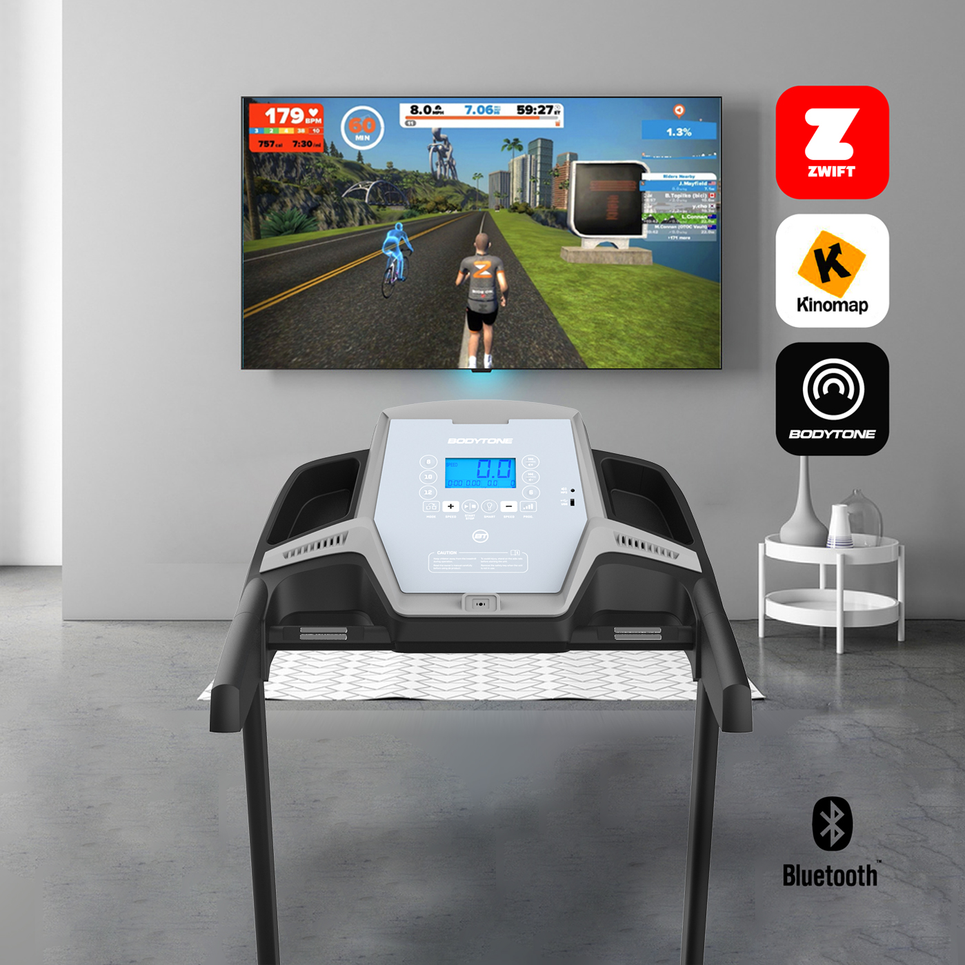 Si instalas la app en tu móvil, tendrás a tu alcance una forma eficaz de registrar tus entrenamientos con los equipos domésticos de Bodytone, como la Cinta de Correr DT14+. Gracias a un sensor especialmente diseñado y fabricado para Bodytone, podrás visualizar la distancia o velocidad a tiempo real durante tu entrenamiento.